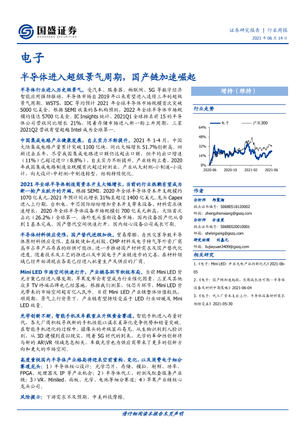 【国盛证券】【20210614】电子行业周报:半导体进入超级景气周期,国产链加速崛起-34页