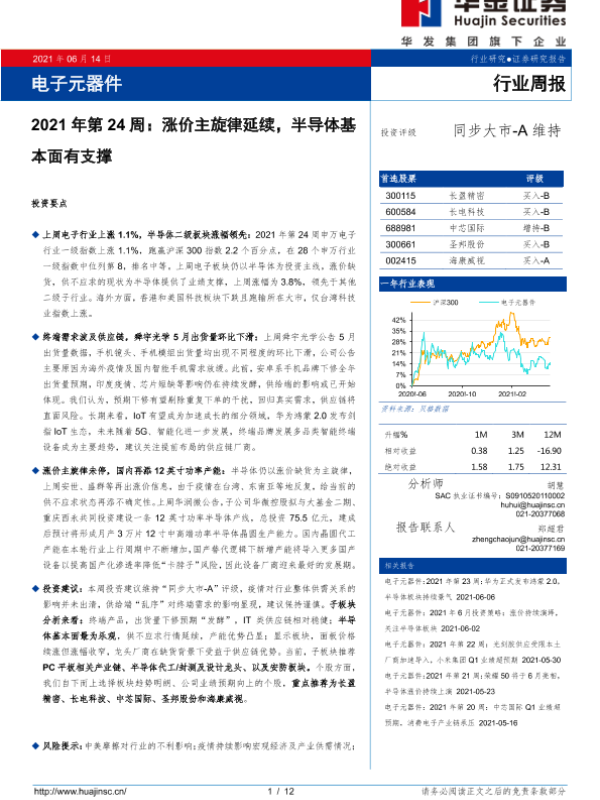 【华金证券】【20210614】电子元器件2021年第24周:涨价主旋律延续,半导体基本面有支撑-12页