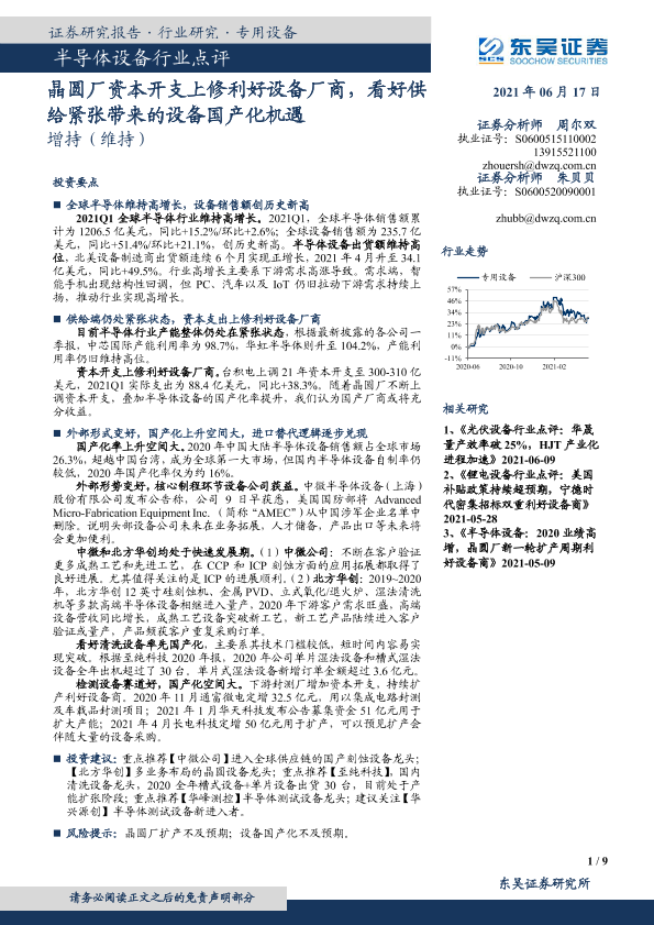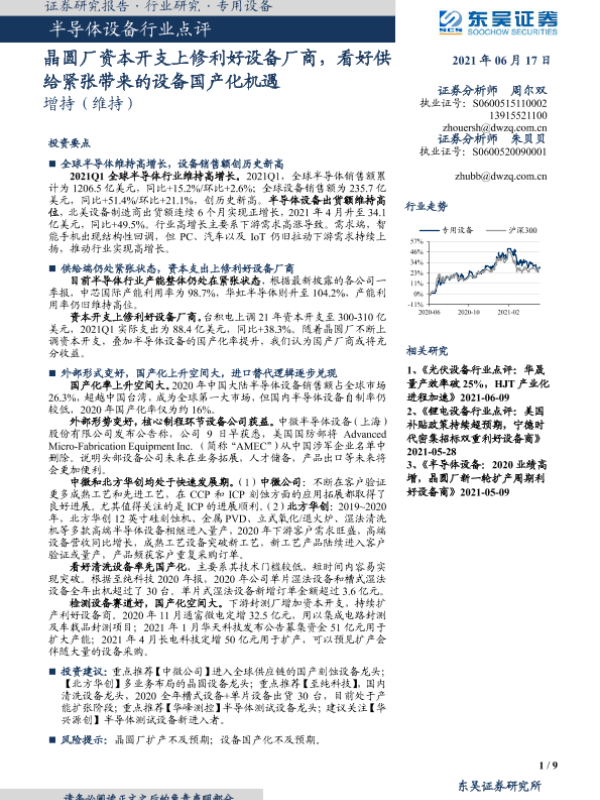【东吴证券】【20210617】半导体设备行业点评:晶圆厂资本开支上修利好设备厂商,看好供给紧张带来的设备国产化机遇-9页