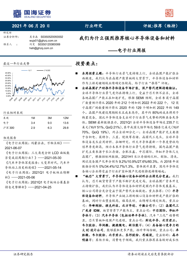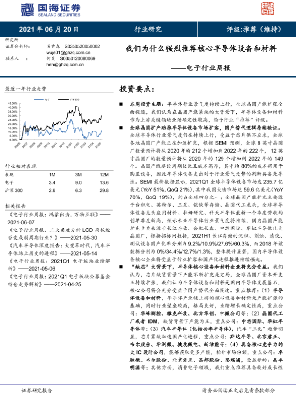 【国海证券】【20210620】我们为什么强烈推荐核心半导体设备和材料——电子行业周报-22页