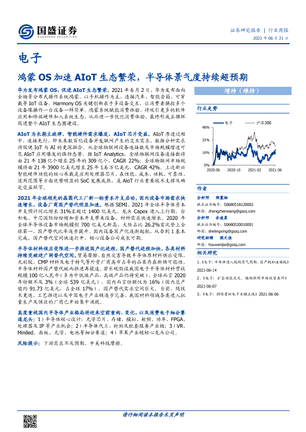 【国盛证券】【20210621】电子行业周报:鸿蒙OS加速AIoT生态繁荣,半导体景气度持续超预期-18页