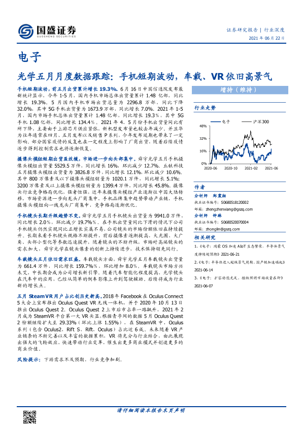 【国盛证券】【20210622】光学五月月度数据跟踪:手机短期波动,车载、VR依旧高景气-9页