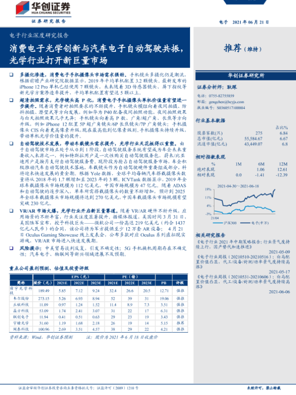 【华创证券】【20210621】电子行业深度研究报告:消费电子光学创新与汽车电子自动驾驶共振,光学行业打开新巨量市场-56页