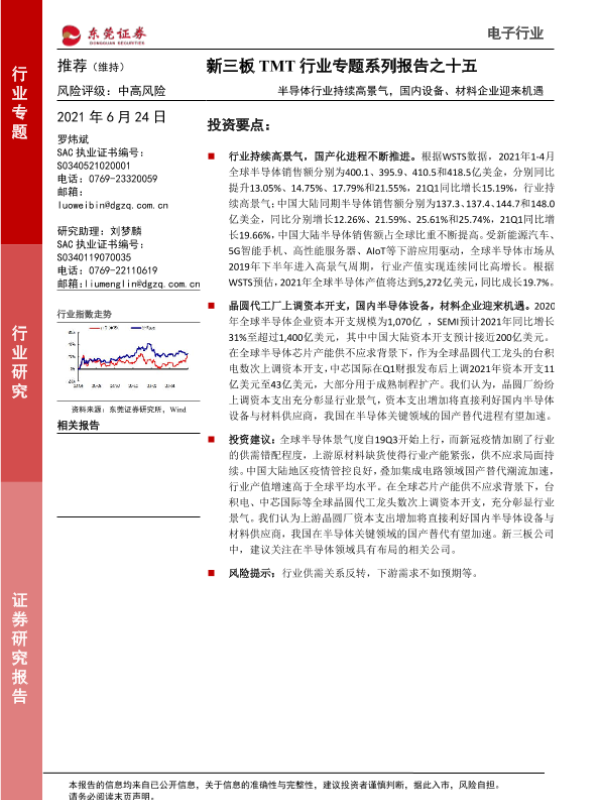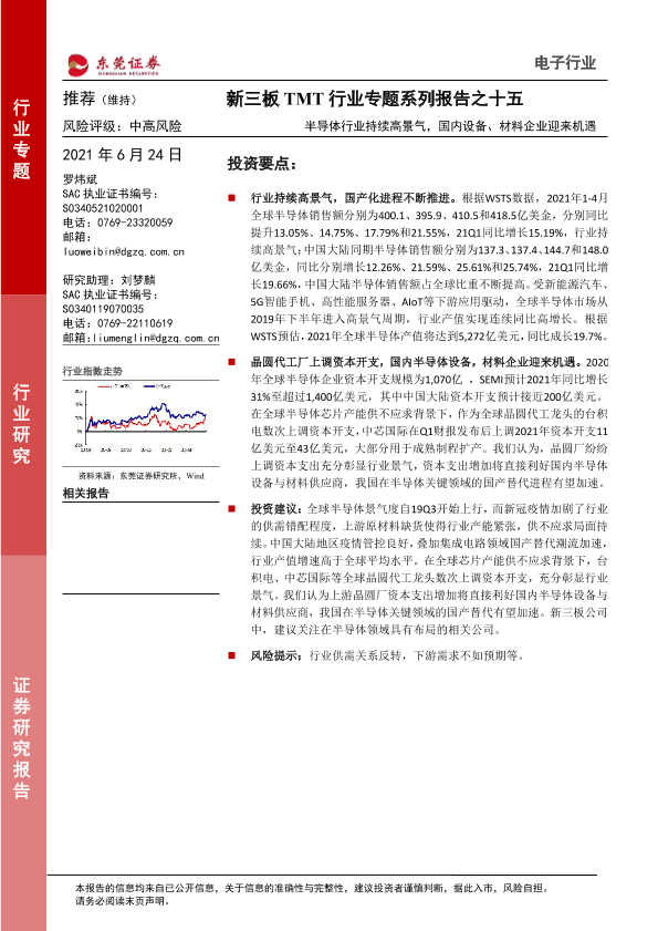 【东莞证券】【20210624】新三板TMT行业专题系列报告之十五:半导体行业持续高景气,国内设备、材料企业迎来机遇-16页