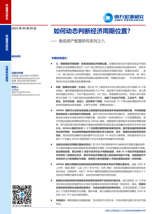 ARIMA模型 前瞻综合指标 宏观经济学 经济周期 资产配置