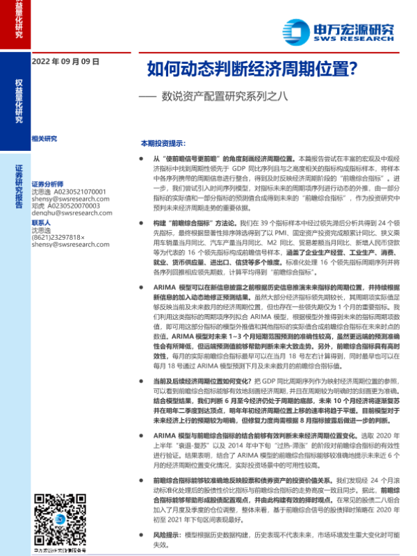 【申万宏源】【20220909】数说资产配置研究系列之八:如何动态判断经济周期位置?-40页