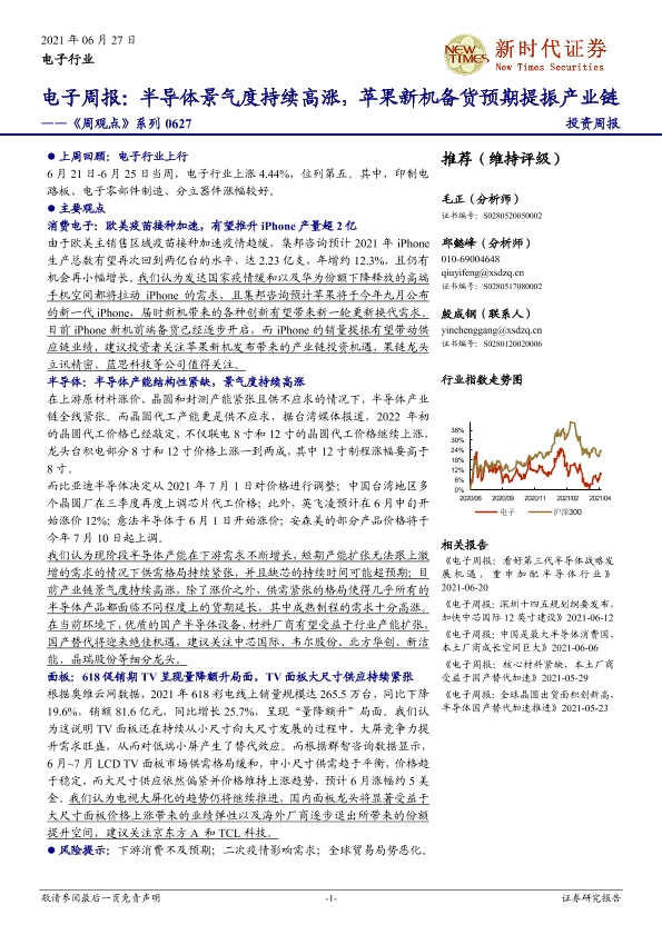【新时代证券】【20210627】电子周报:半导体景气度持续高涨,苹果新机备货预期提振产业链-21页