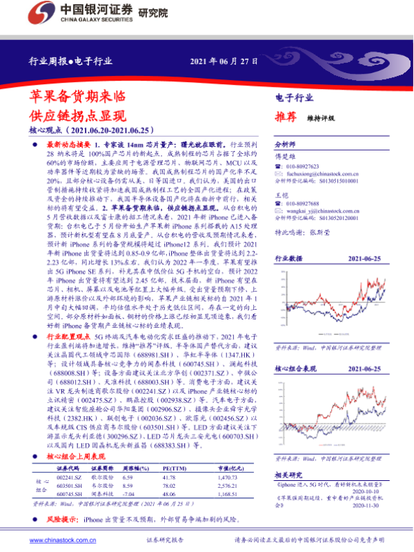 【银河证券】【20210627】20210627-中国银河-电子行业周报:苹果备货期来临 供应链拐点显现-24页