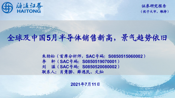 【海通证券】【20210711】全球及中国5月半导体销售新高,景气趋势依旧-10页