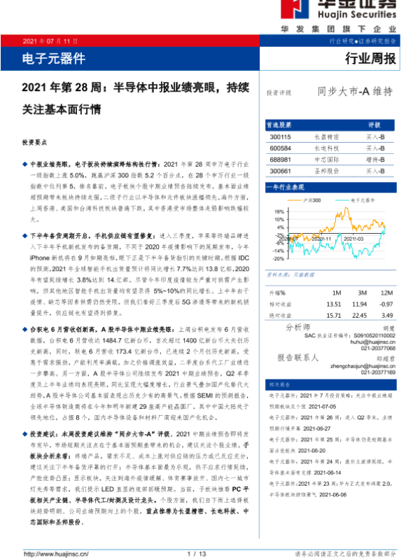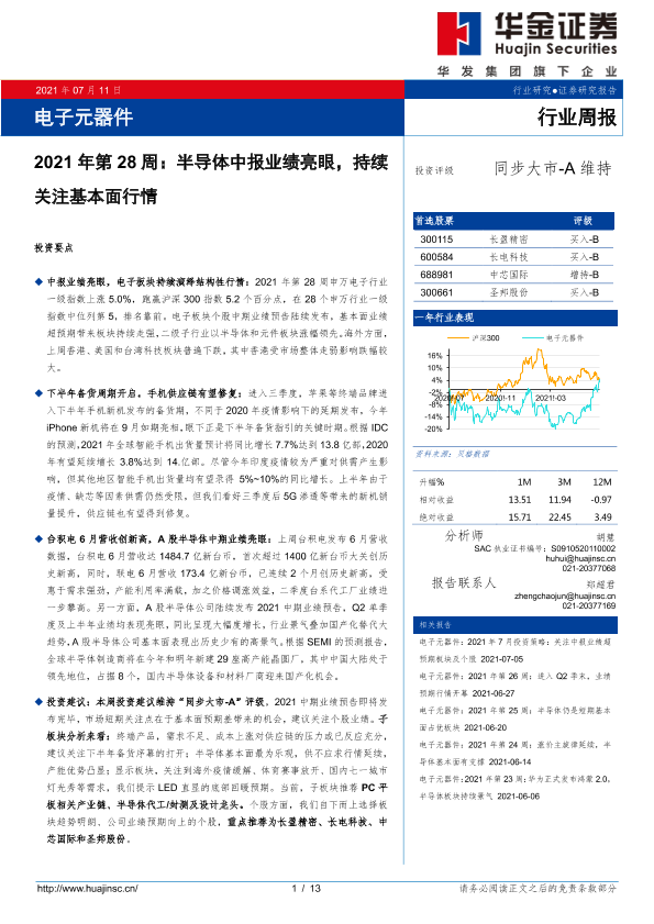 【华金证券】【20210711】2021年第28周:半导体中报业绩亮眼,持续关注基本面行情-13页