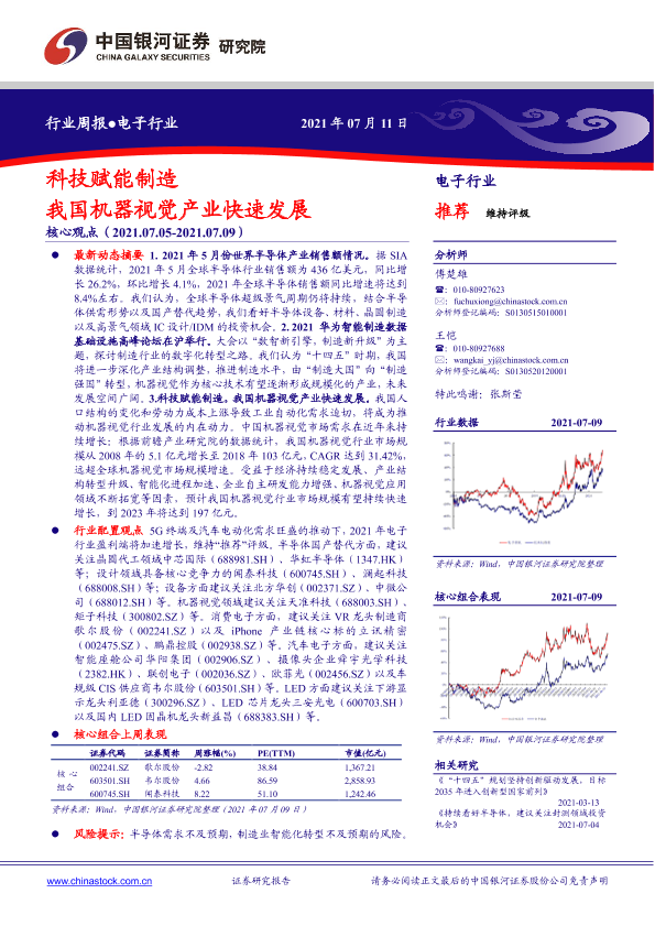 【银河证券】【20210711】电子行业周报:科技赋能制造 我国机器视觉产业快速发展-26页
