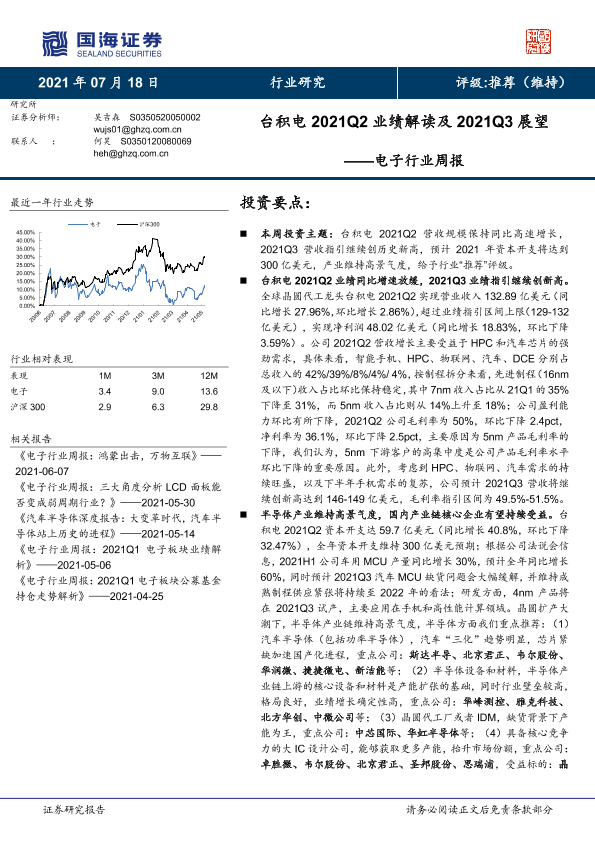 【国海证券】【20210718】20210718-国海证券-电子行业周报:台积电2021Q2业绩解读及2021Q3展望-22页