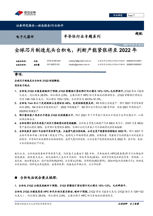 【国信证券】【20210719】全球芯片制造龙头台积电,判断产能紧张将至2022年-9页