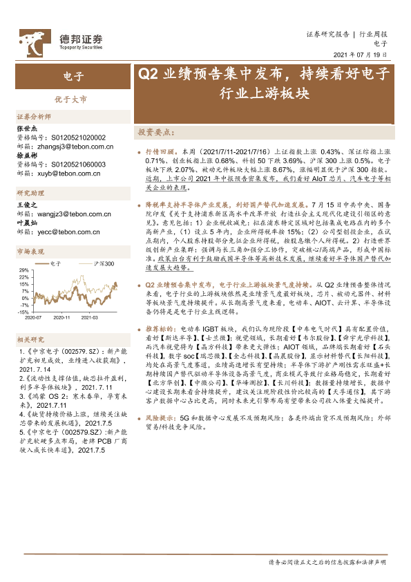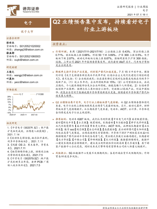 【德邦证券】【20210719】20210719-德邦证券-电子行业周报:Q2业绩预告集中发布,持续看好电子行业上游板块-11页