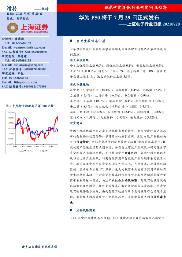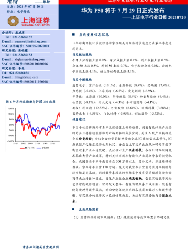 【上海证券】【20210720】上证电子行业日报:华为P50将于7月29日正式发布-6页