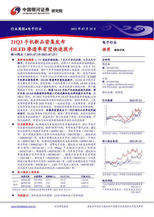 【银河证券】【20210725】20210725-中国银河-电子行业周报:21Q3手机新品密集发布OLED渗透率有望快速提升-25页