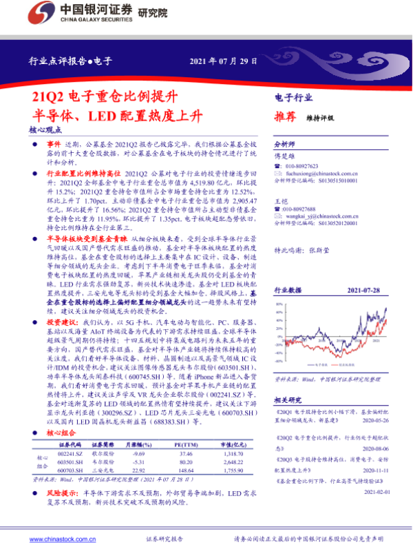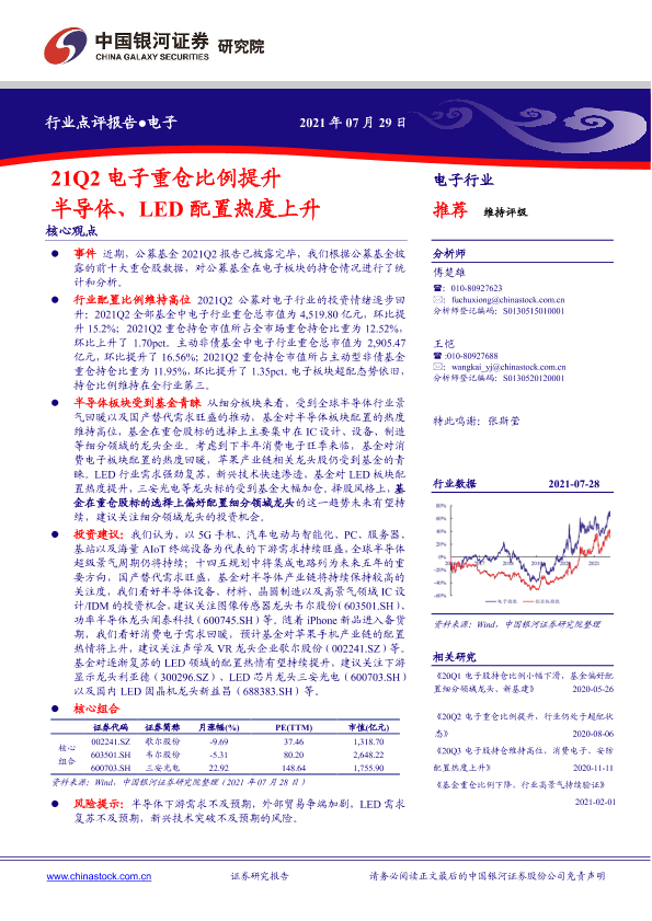 【银河证券】【20210729】21Q2电子重仓比例提升 半导体、LED配置热度上升-10页