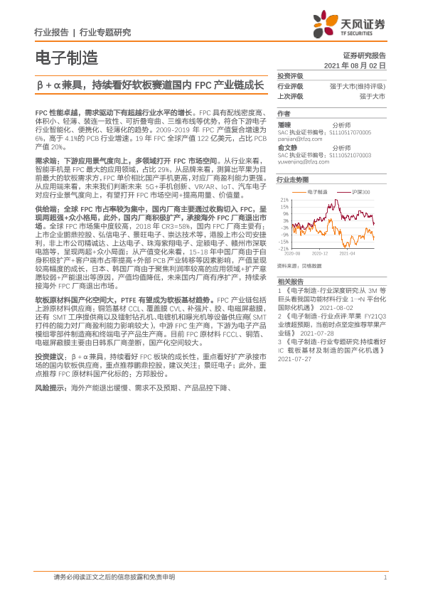 【天风证券】【20210802】电子制造行业专题研究:β+α兼具,持续看好软板赛道国内FPC产业链成长-24页