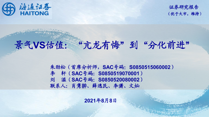 【海通证券】【20210808】电子行业景气VS估值:“亢龙有悔”到“分化前进”-11页