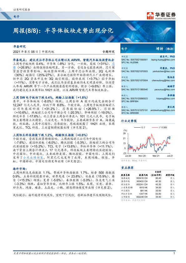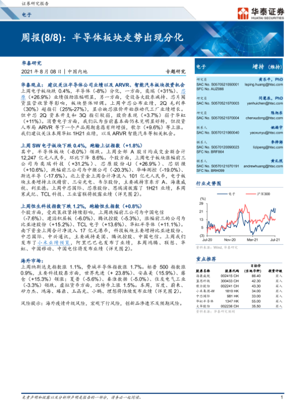 【华泰证券】【20210808】电子周报:半导体板块走势出现分化-13页