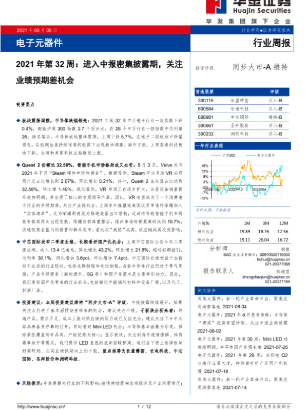【华金证券】【20210808】电子元器件2021年第32周:进入中报密集披露期,关注业绩预期差机会-12页