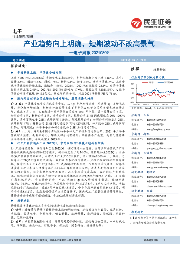【民生证券】【20210809】20210809-民生证券-电子周报:产业趋势向上明确,短期波动不改高景气-19页