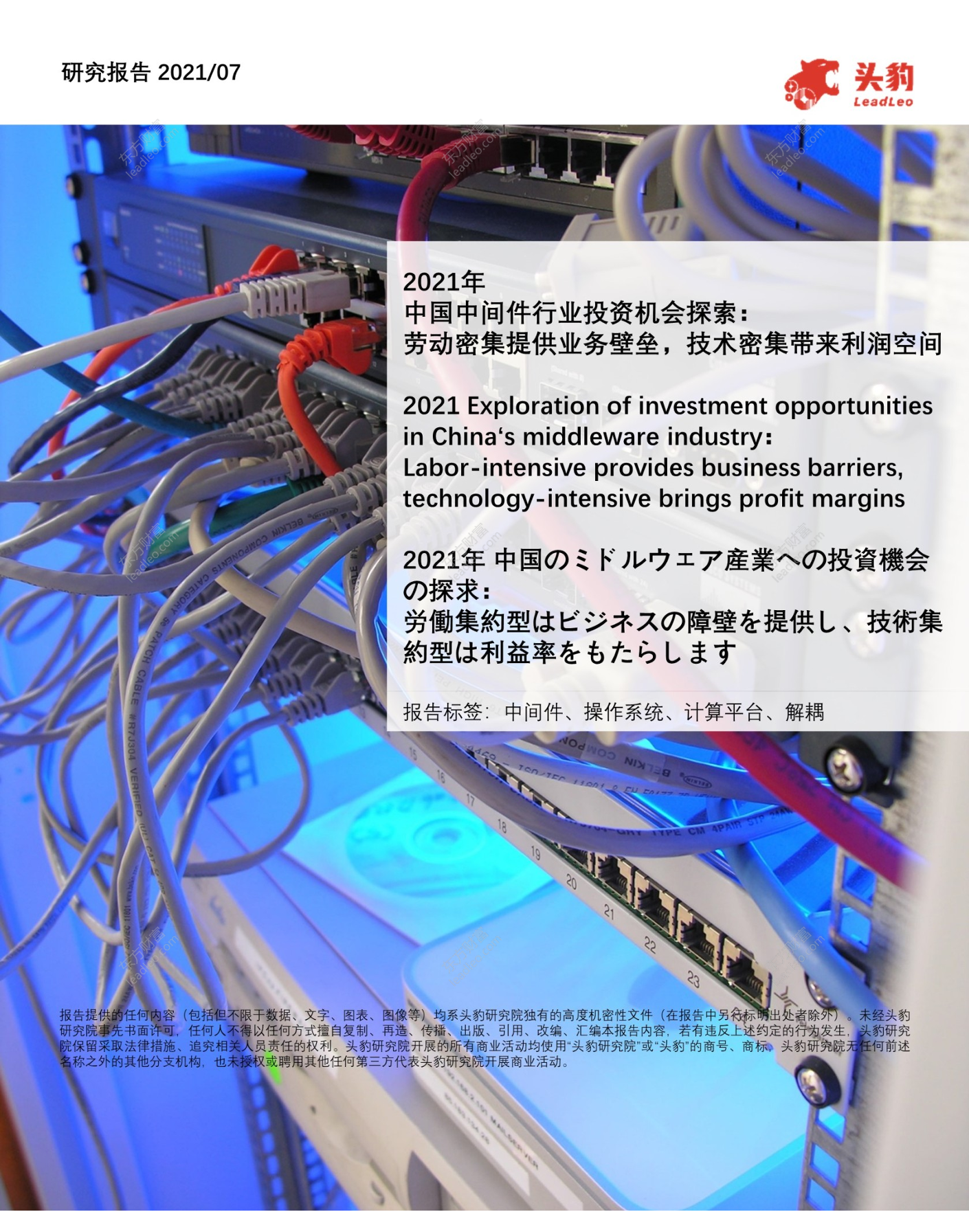 【头豹研究院】【2021】2021年中国中间件行业投资机会探索:劳动密集提供业务壁垒,技术密集带来利润空间-36页