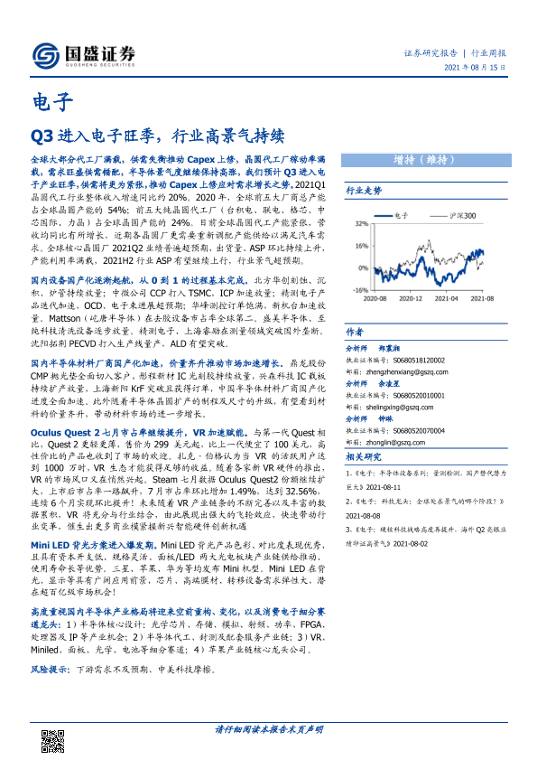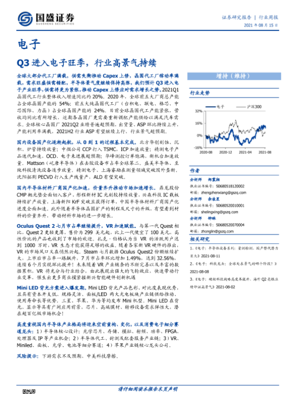 【国盛证券】【20210815】20210815-国盛证券-电子行业周报:Q3进入电子旺季,行业高景气持续-26页