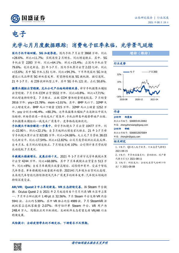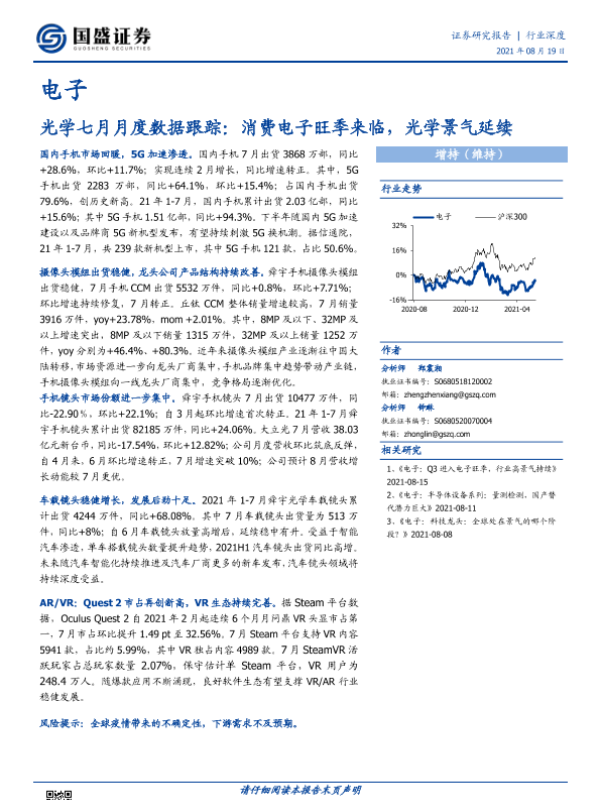 【国盛证券】【20210819】光学七月月度数据跟踪:消费电子旺季来临,光学景气延续-10页