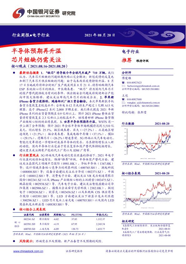 【银河证券】【20210820】20210820-中国银河-电子行业周报:半导体预期再升温 芯片短缺仍需关注-30页