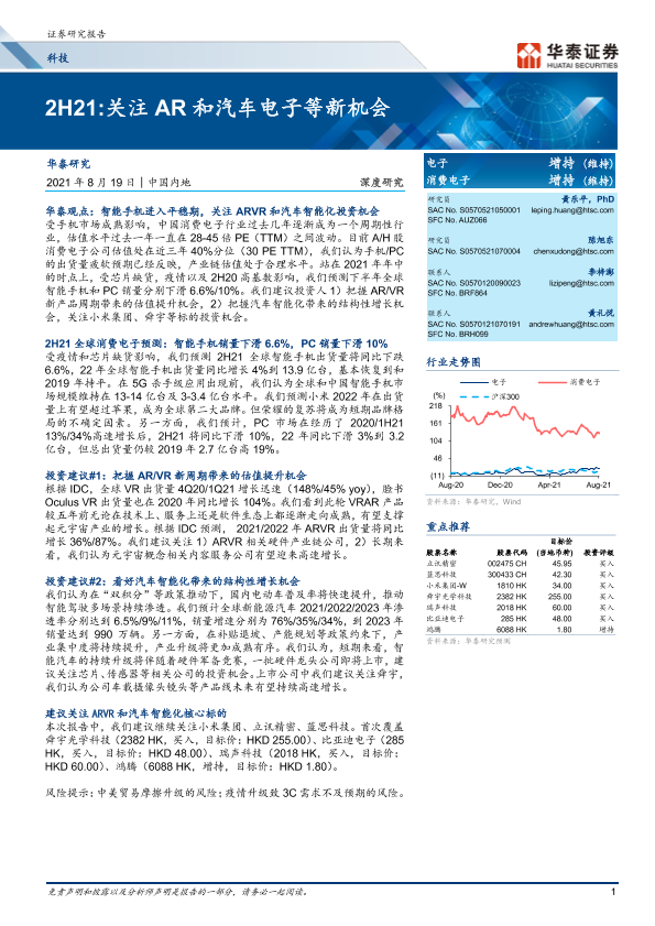 【华泰证券】【20210819】2H21:关注AR和汽车电子等新机会-68页