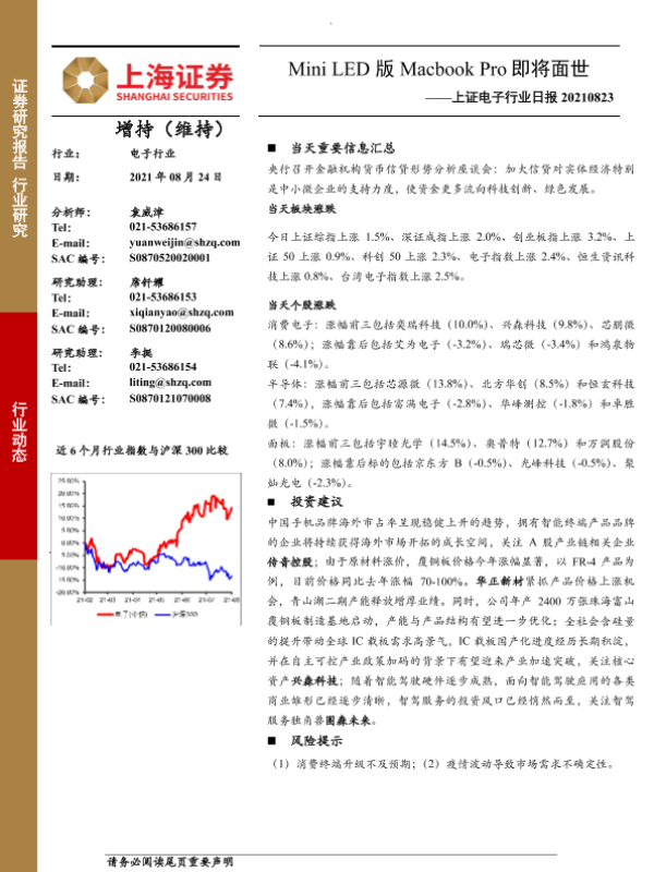 【上海证券】【20210824】上证电子行业日报:Mini LED版Macbook Pro即将面世-7页