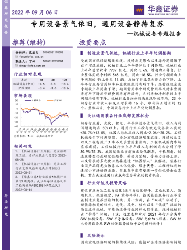 【华鑫证券】【20220906】机械设备行业专题报告:专用设备景气依旧,通用设备静待复苏-22页