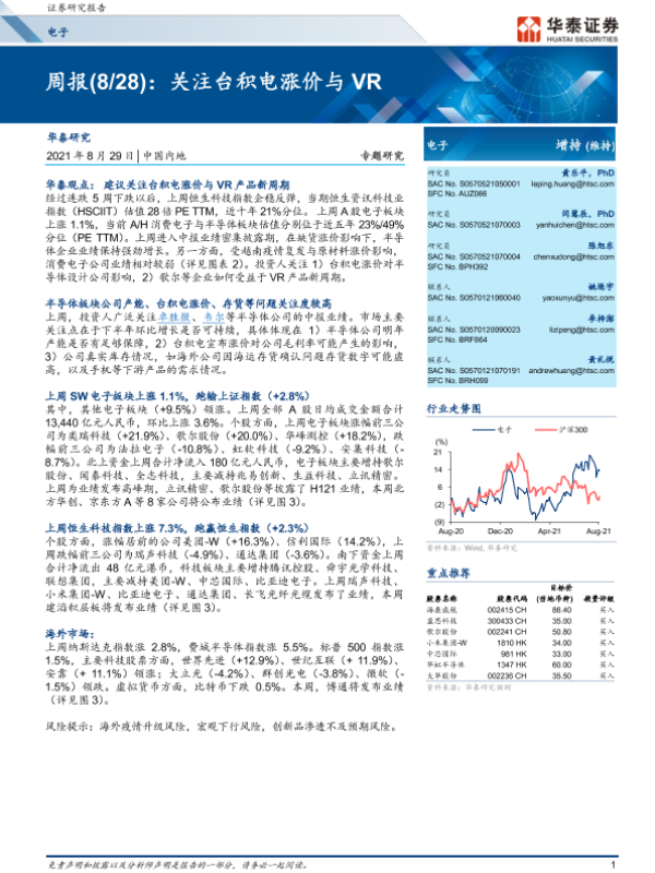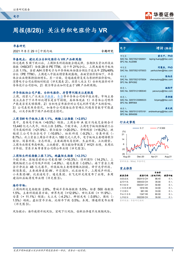 【华泰证券】【20210829】电子周报(8 28):关注台积电涨价与VR-14页