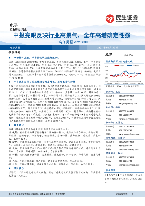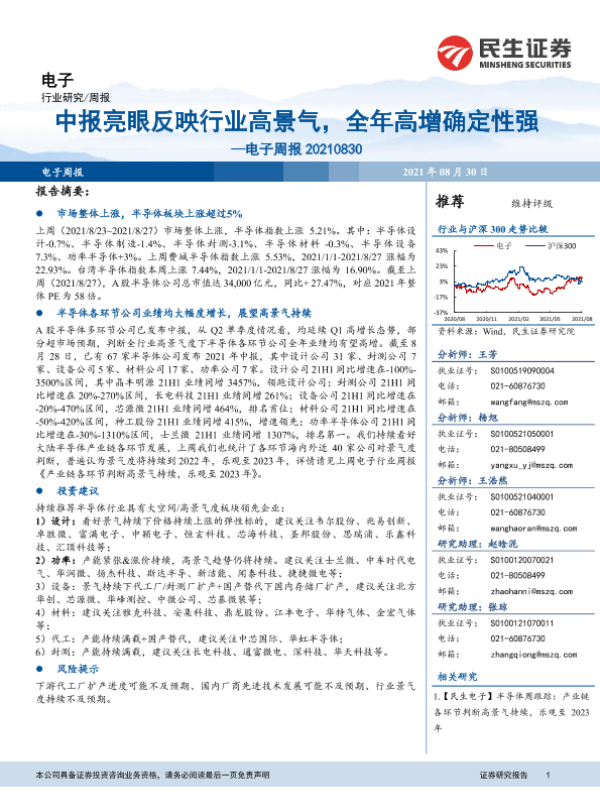 【民生证券】【20210830】20210830-民生证券-电子周报:中报亮眼反映行业高景气,全年高增确定性强-18页