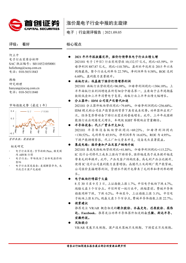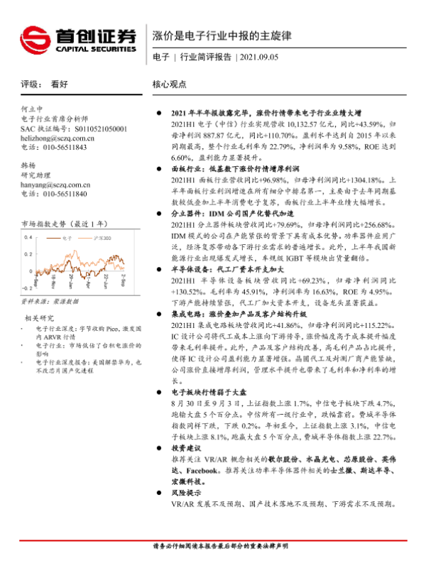 【首创证券】【20210905】20210905-首创证券-电子行业简评报告:涨价是电子行业中报的主旋律-11页