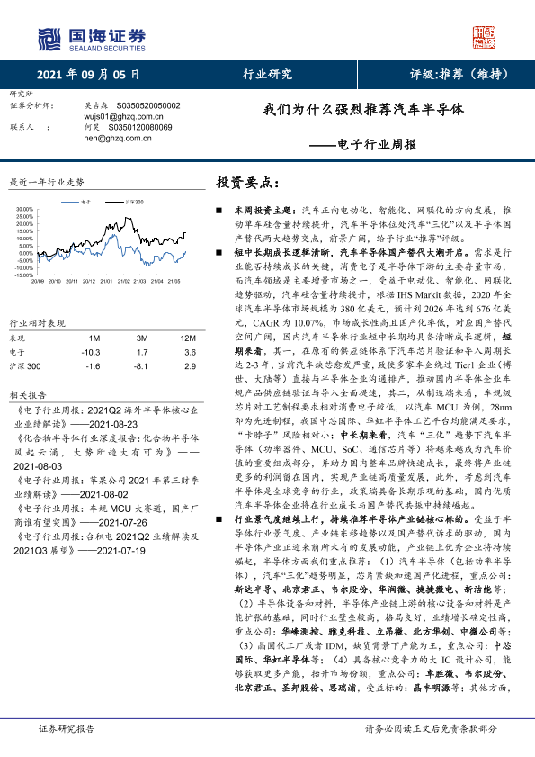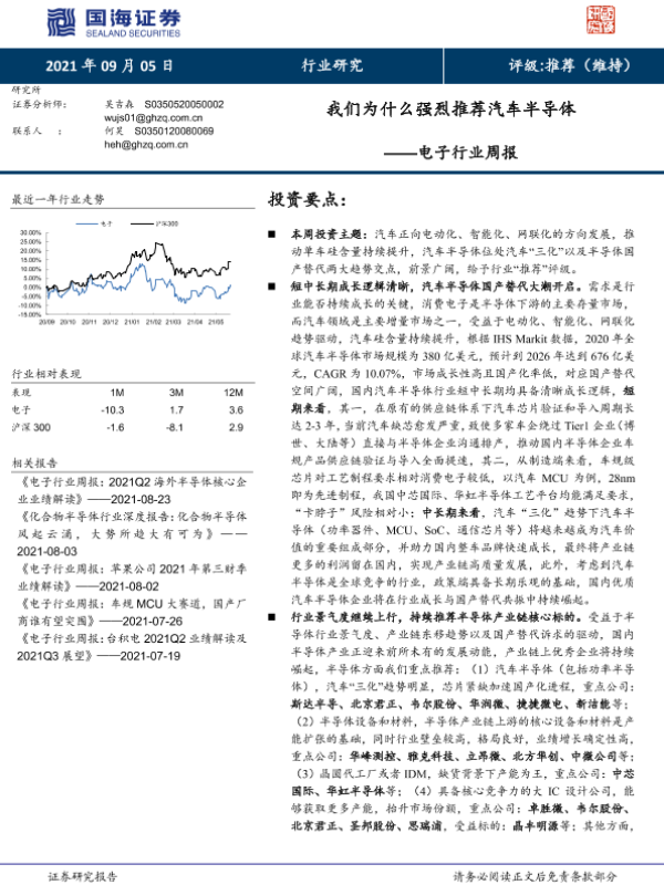 【国海证券】【20210905】20210905-国海证券-电子行业周报:我们为什么强烈推荐汽车半导体-27页