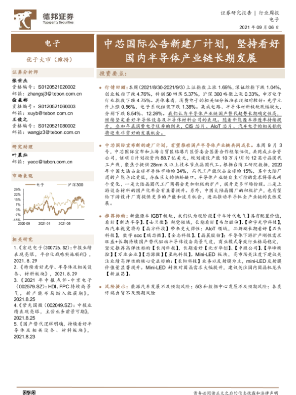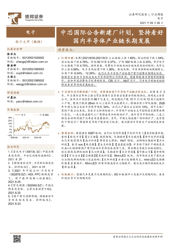 【德邦证券】【20210906】20210906-德邦证券-电子行业周报:中芯国际公告新建厂计划,坚持看好国内半导体产业链长期发展-11页