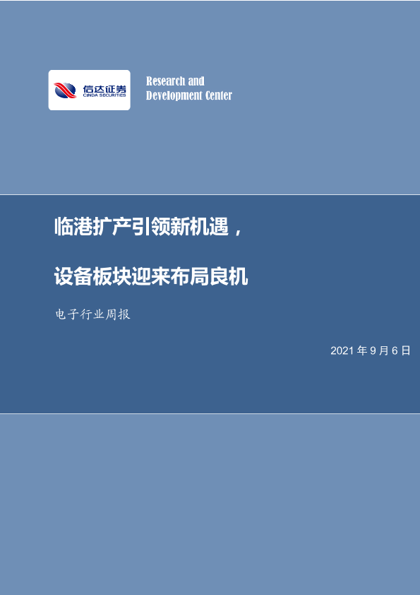 【信达证券】【20210906】20210906-信达证券-电子行业周报:临港扩产引领新机遇,设备板块迎来布局良机-15页