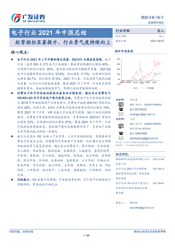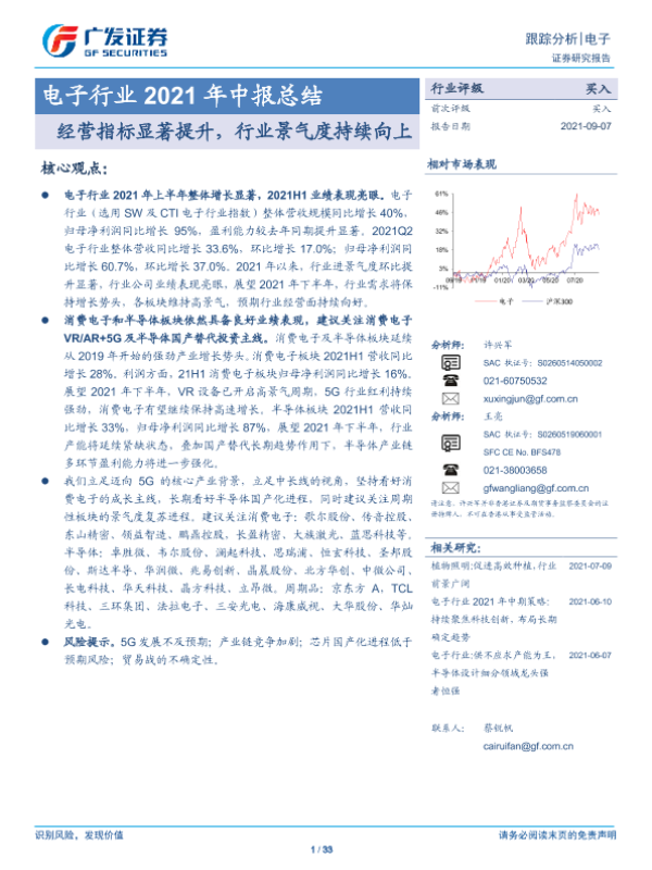 【广发证券】【20210907】电子行业2021年中报总结:经营指标显著提升,行业景气度持续向上-33页