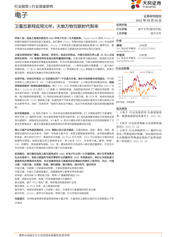 【天风证券】【20210905】20210905-天风证券-电子行业深度研究:卫星互联网应用元年:天地万物互联时代到来-53页