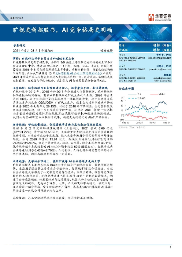 【华泰证券】【20210908】华泰证券-科技动态点评:旷视更新招股书,AI竞争格局更明确-6页
