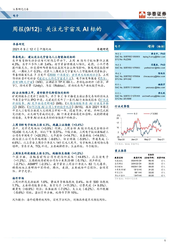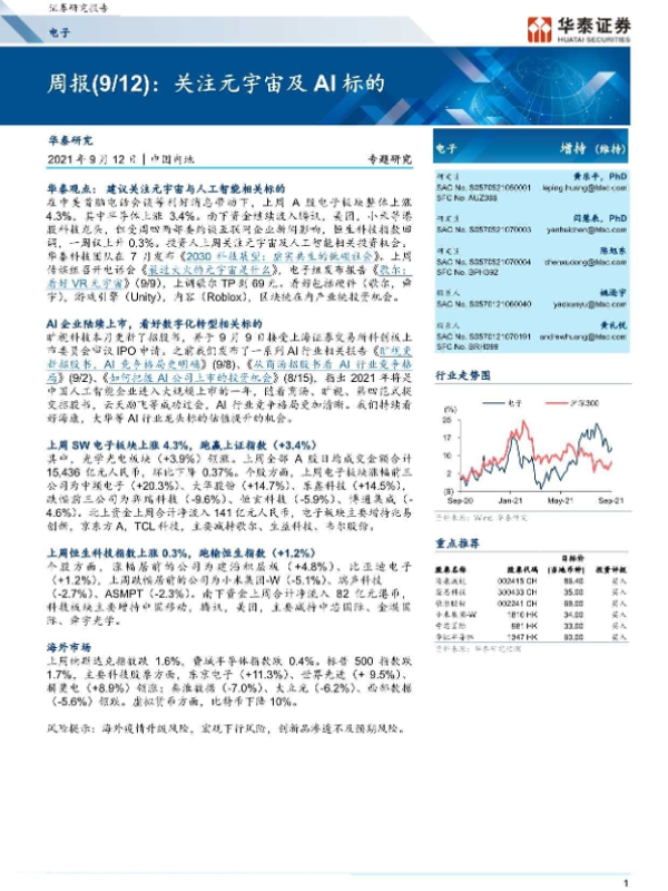 【华泰证券】【20210912】20210912-华泰证券-电子周报:关注元宇宙及AI标的-13页