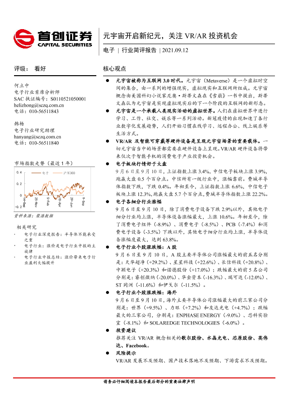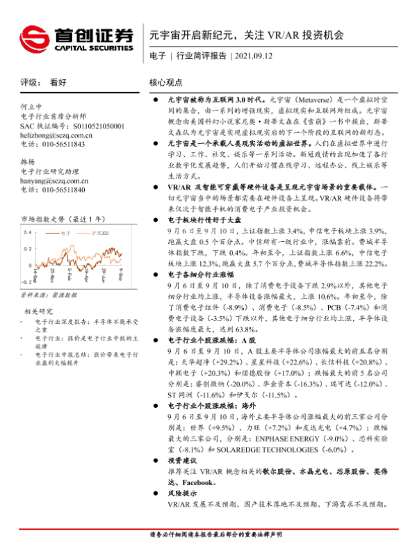 【首创证券】【20210912】20210912-首创证券-电子行业简评报告:元宇宙开启新纪元,关注VR AR投资机会-9页