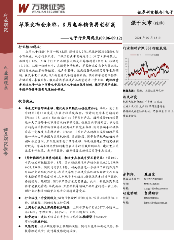 新能源汽车 汽车电子 消费电子 电子行业 苹果发布会