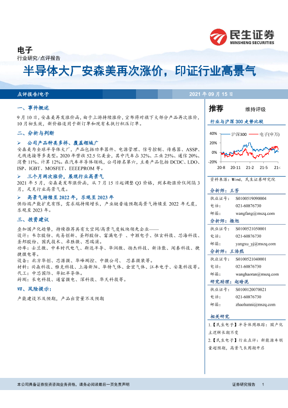 【民生证券】【20210915】半导体大厂安森美再次涨价,印证行业高景气-4页