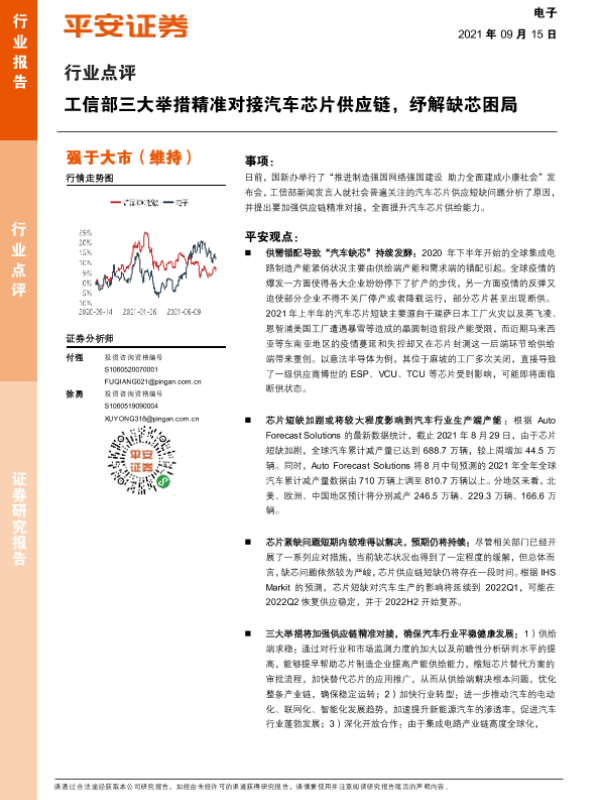 【平安证券】【20210915】电子行业点评:工信部三大举措精准对接汽车芯片供应链,纾解缺芯困局-3页