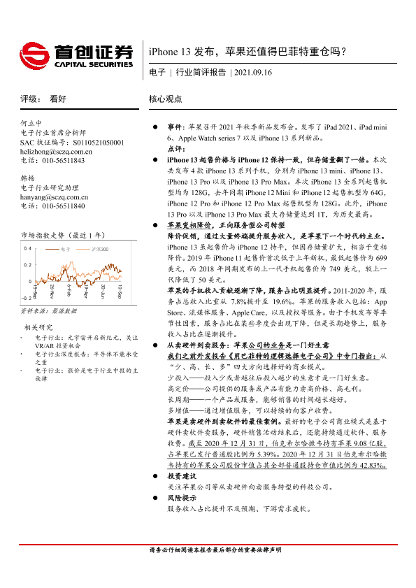 【首创证券】【20210916】20210916-首创证券-电子行业简评报告:iPhone13发布,苹果还值得巴菲特重仓吗?-6页