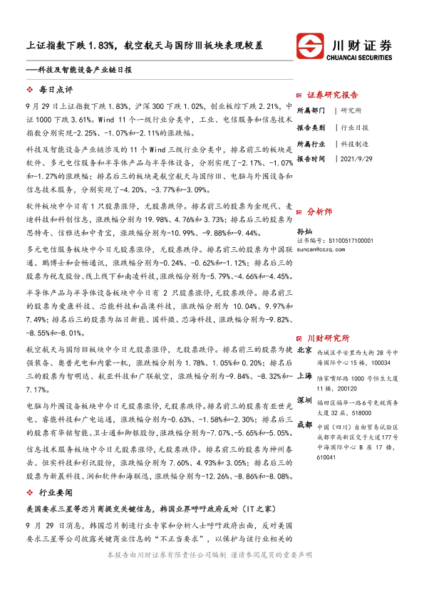 【川财证券】【20210929】科技及智能设备产业链日报-5页