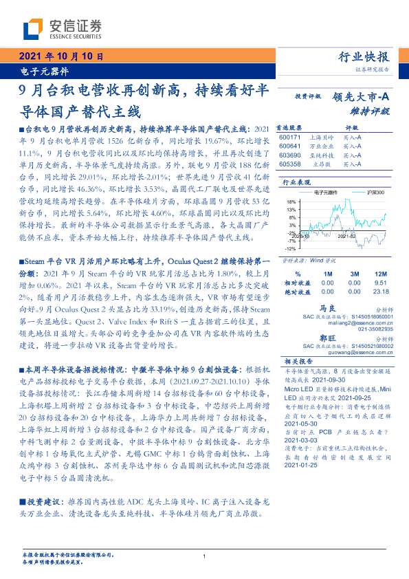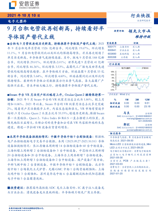【安信证券】【20211010】电子元器件:9月台积电营收再创新高,持续看好半导体国产替代主线-10页